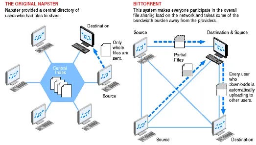 政府擅长切断像 Napster 这样的中心化网络的“头”,但像 Gnutella 和 Tor 这样的纯 P2P 网络似乎能够自我维持。