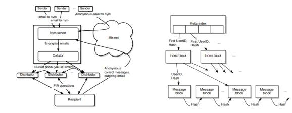 早期的重邮器仅仅是转发信息并掩盖发送者的身份,而后来的协议(如最受欢迎的 Mixmaster 重邮器)依赖去中心化节点,通过 P2P 网络分发固定大小的加密信息块。Bitcoin 的架构与重邮器非常相似,只是它的节点传输的是交易数据而非消息。1997 年,加密无政府主义创始人 Tim May 甚至提出了一种基于重邮器的数字货币。