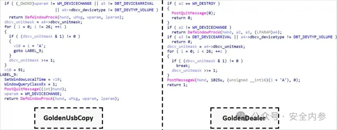 图:GoldenUsbCopy和GoldenDealer的代码比较