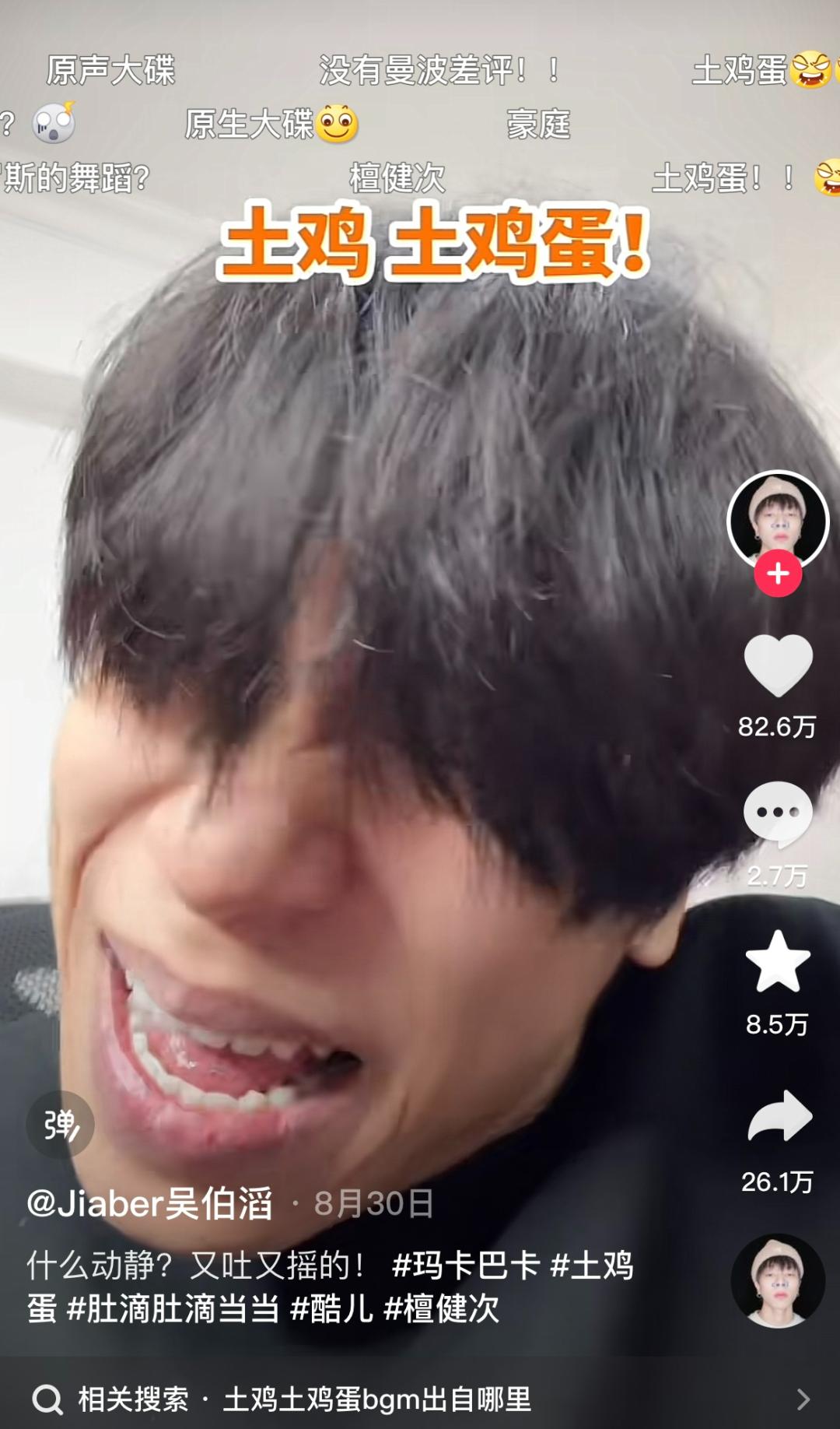 差不多从八月下旬开始,拥有动感鼓点、空耳歌词为“土鸡土鸡蛋”的BGM,突然在短视频平台配乐中杀出重围,甚至有越来越火的趋势。