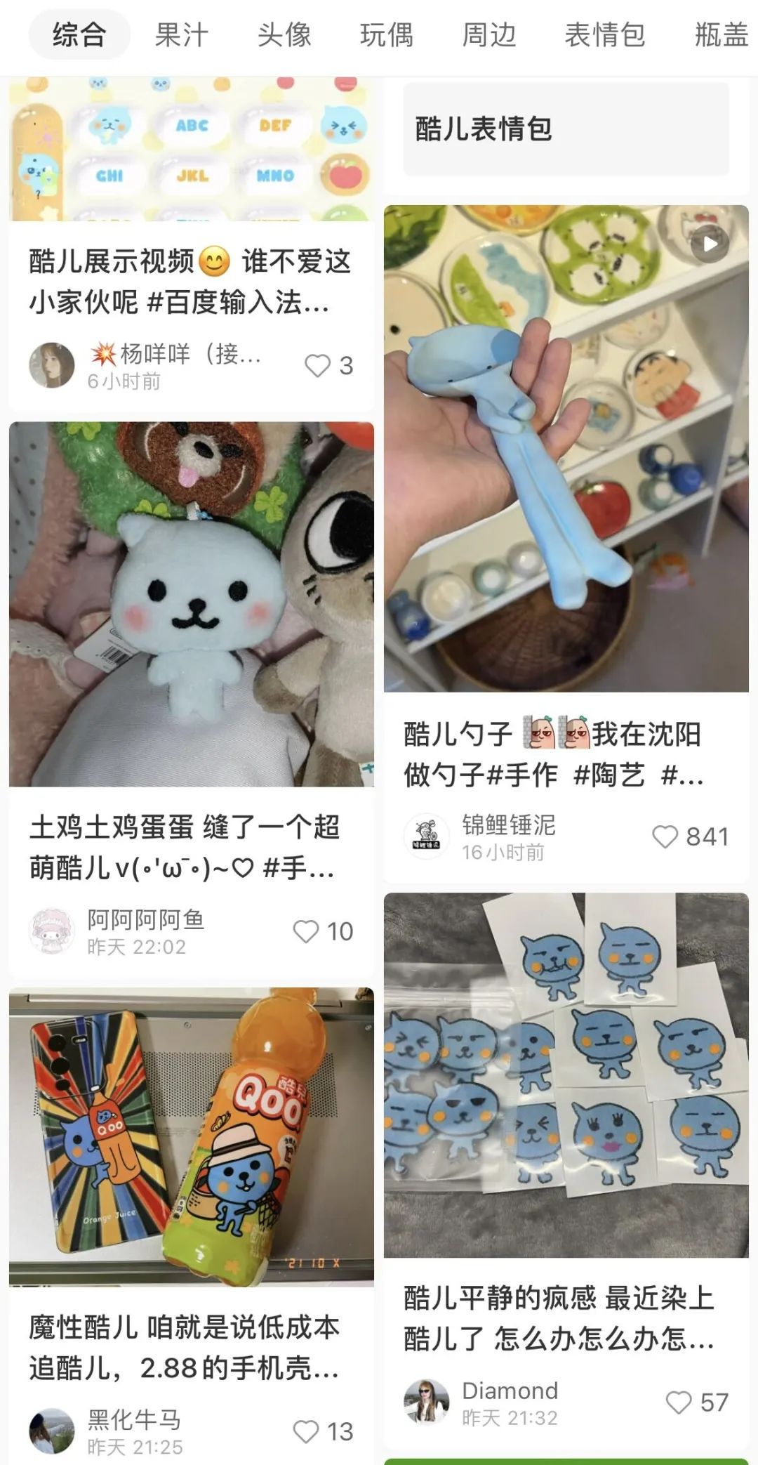 由于玩梗的“人传人”现象,顺便带着相关剪辑视频的画面主角——广告角色“酷儿”,打了场翻红仗。发头像、壁纸、表情包的博主,让众人领略了一番“百变酷儿”的有趣,社交平台、电商平台的角色中古玩具、定制周边能看见热度和需求正在增长。