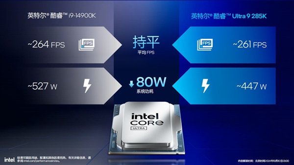 ·游戏体验英特尔酷睿处理器在游戏方面往往能够提供优于竞品的体验,无论是高帧还是1%低帧的表现都更加可靠。不过相对于以往酷睿桌面级处理器的升级逻辑而言,Arrow Lake更加强调游戏时的能效表现,毕竟13、14两代酷睿处理器的满载功耗和温度都比较高,导致360水冷都很难压得住,甚至还会衍生出稳定性方面的一些问题。Arrow Lake着重能效与每瓦性能的改善,自然会在这些方面有所改观。对比上一代Raptor Lake-R,相同游戏帧率下,Arrow Lake系统功耗最高降低165W。另外参考《刺客信条:幻景》这款游戏的实机演示,酷睿Ultra 9 285K处理器与酷睿i9-14900K处理器相比,在达到261fps的情况下功耗为447W,而后者264fps时的功耗为527W,酷睿Ultra 8 285K系统功耗降低了80W左右。