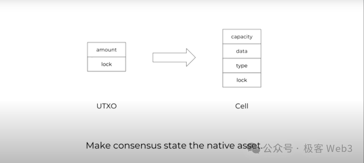 我们在 Nervos 中提出了全新的状态模型,称为“Cell”,可以看作是 UTXO 的一种扩展。在比特币 UTXO 的状态中,你能储存的只有比特币的余额数值,而 Cell 中可存储任意类型的数据,并将比特币 UTXO 的 amount 和 integer value 泛化为“Capacity”,用以指定 Cell 的最大存储容量。通过这种方式,我们将 CKB 上原生资产的数量和状态大小绑定在一起。任何一个 Cell 占据的空间不能超过其容量限制,所以数据总量会保持在一定范围内。