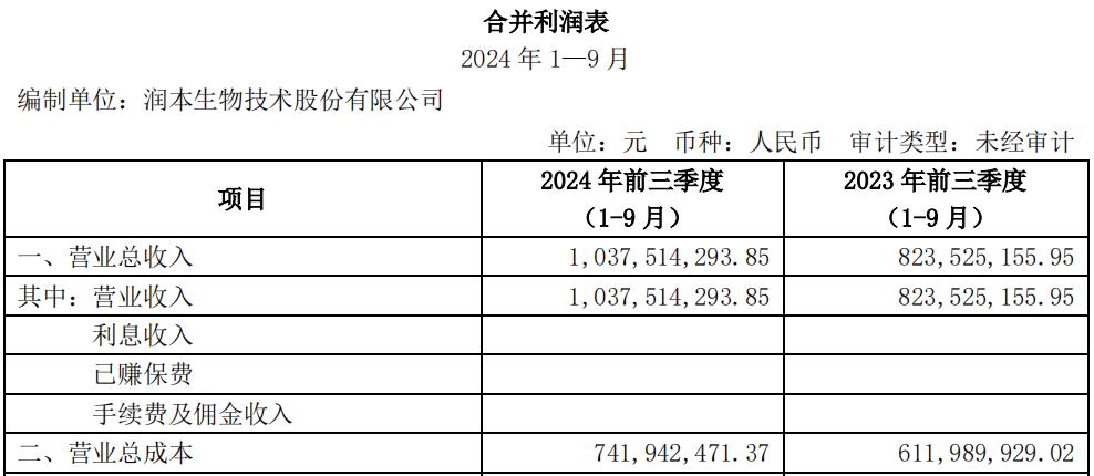 10月22日,润本生物技术股份有限公司(股票代码:603193 ;以下简称:润本股份)公布了2024年第三季度财务报告。