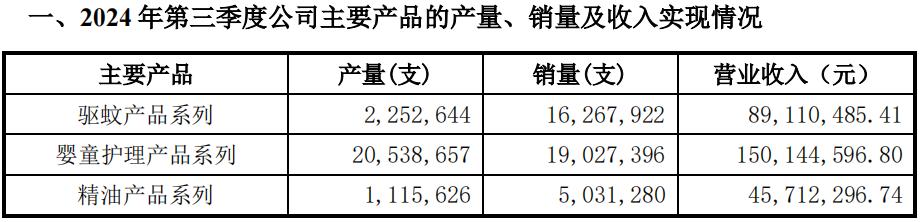 公开资料显示,润本股份主要经营婴童护理、精油、驱蚊等三大核心产品系列。