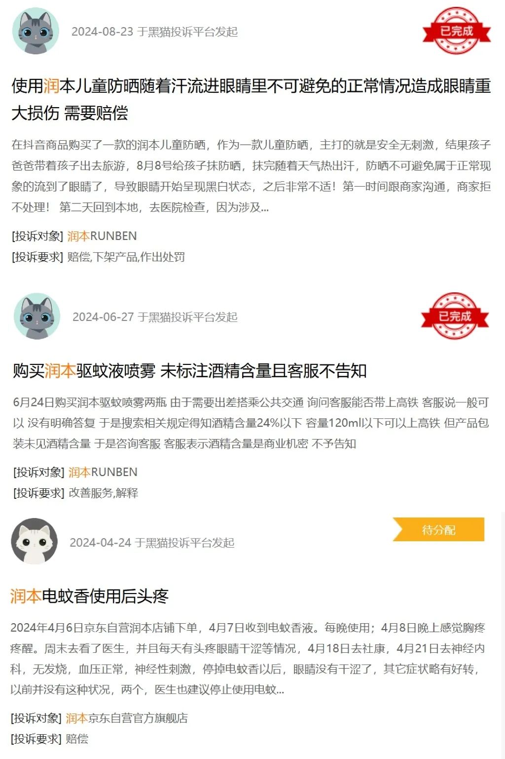 在黑猫投诉平台上,有不少消费者投诉润本产品效果不好、使用后出现过敏的情况。例如,有消费者在使用润本儿童防晒产品后,因汗水将其带入眼睛而遭受了严重伤害。这与润本所宣传的“安全无刺激”形成了鲜明对比。