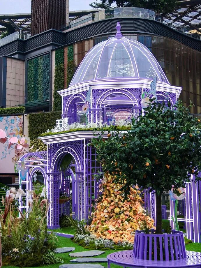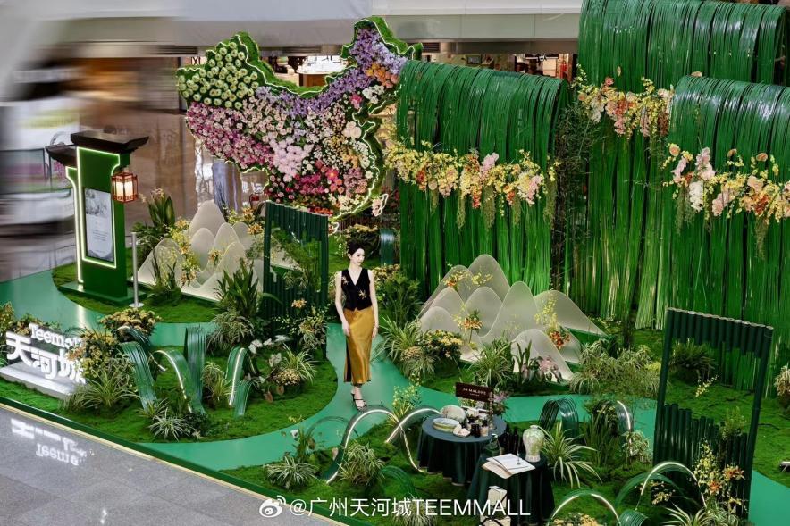 广州天河城带来“月映中华 一路繁花——大美中国艺术花卉主题展”,以中国地图以及广州花城文化特色为核心,展现祖国的大好河山,增进场内节日氛围。