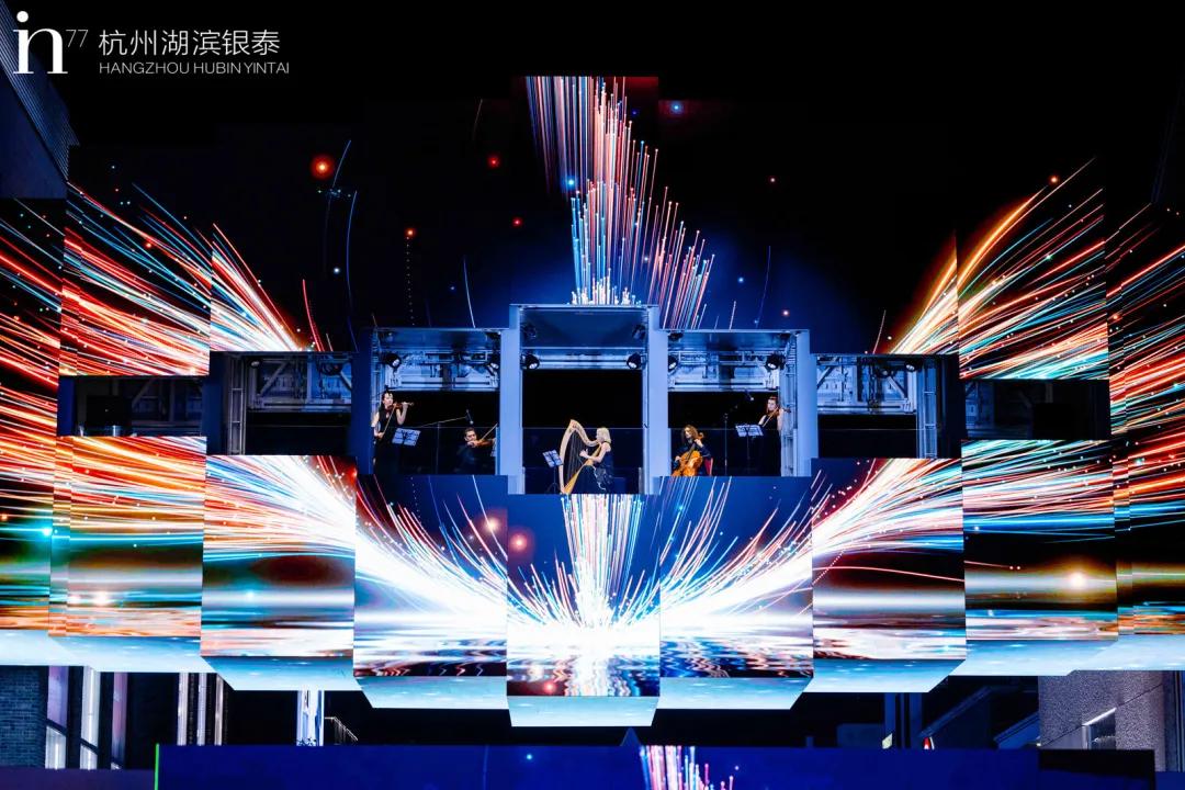 杭州湖滨银泰in77为全业态多功能复合型大型商业体,地处湖滨路步行街、紧邻西湖,客流优势明显,历来人气高涨。9月16日,位于项目A区和D区之间的“西子廊桥”空中剧场首次亮屏;9月27日晚更开启首场演出,随着剧场屏幕缓缓拉开,交响乐团“悬浮”在空中演奏,在城市公共空间呈现剧场艺术的新潮流。