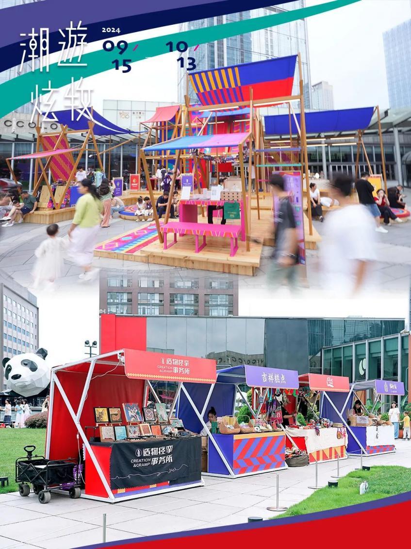 成都IFS在9月15日至10月13日携手专注于民族文化研究的视觉传达设计师王伟朴,打造 “潮遊炫牧”非遗盛会,以经幡为灵感的巨型城市天幕、集聚10余家民族风品牌的游牧聚落,与消费者一道奔赴不缺氧的“川西游牧之旅”。