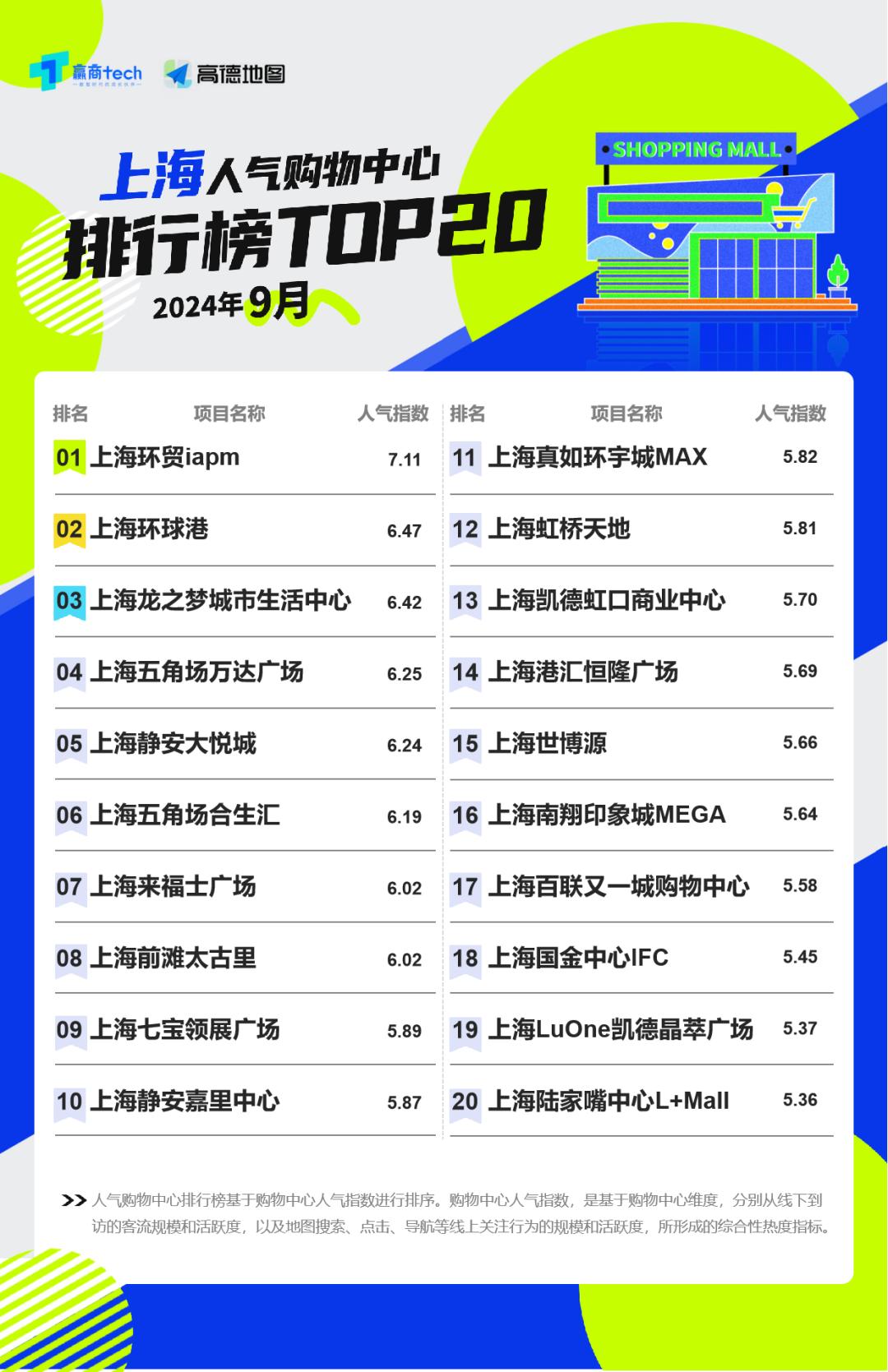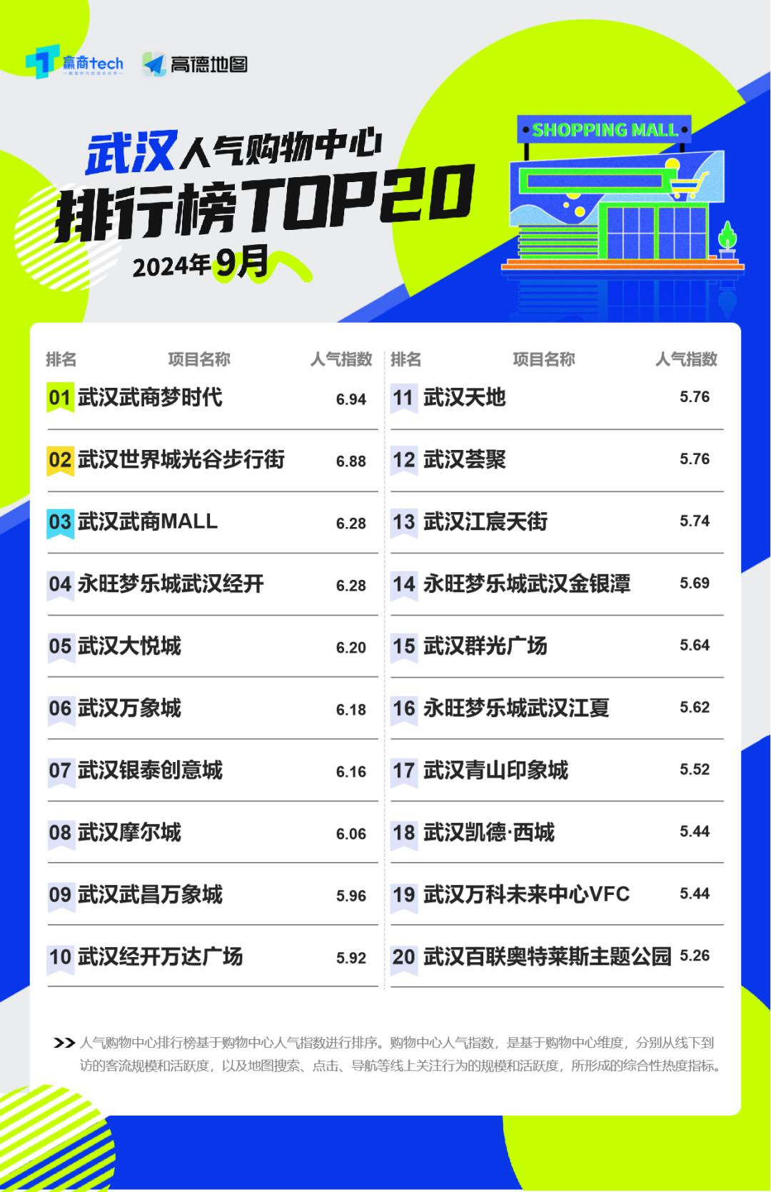 基于此,为了更科学、精准地评价购物中心受欢迎程度,赢商tech与高德地图联合发布《人气购物中心排行榜》,在全国6800+购物中心中,找出实力坚挺的人气王。