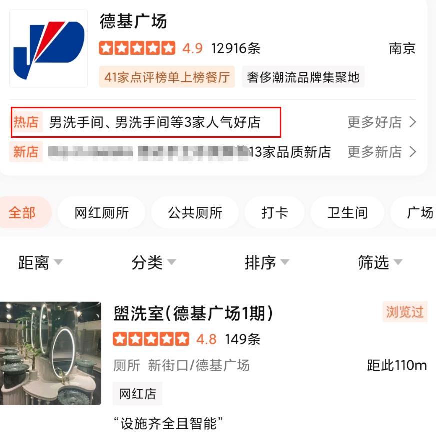 小小厕所,成为了一家大型商场的人气好店,甚至拥有了自己独立的大众点评条目。