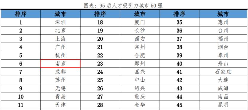在2023年中国最具95后人才吸引力城市50强榜单中,除了北上广深这四大钉子户,南京悄悄排在了前六的位置。