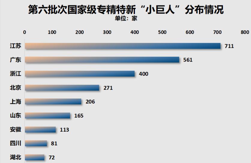而在榜单上,其实江苏已经超过了广东,独揽711家。
