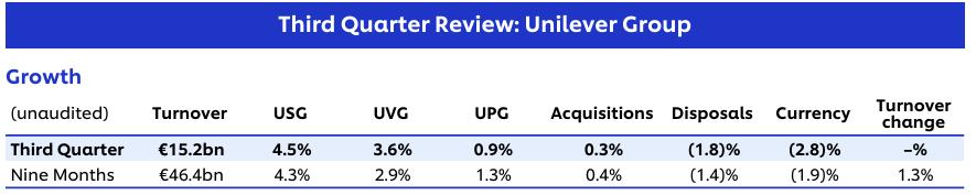 今日(10月24日),联合利华公布了2024年第三季度业绩报告。从财报数据来看,联合利华2024年前9个月营收464亿欧元(约合人民币3556亿元),同比增长1.3%;其中,Q3营收152亿欧元(约合人民币1165亿元),基本销售额增长4.5%。