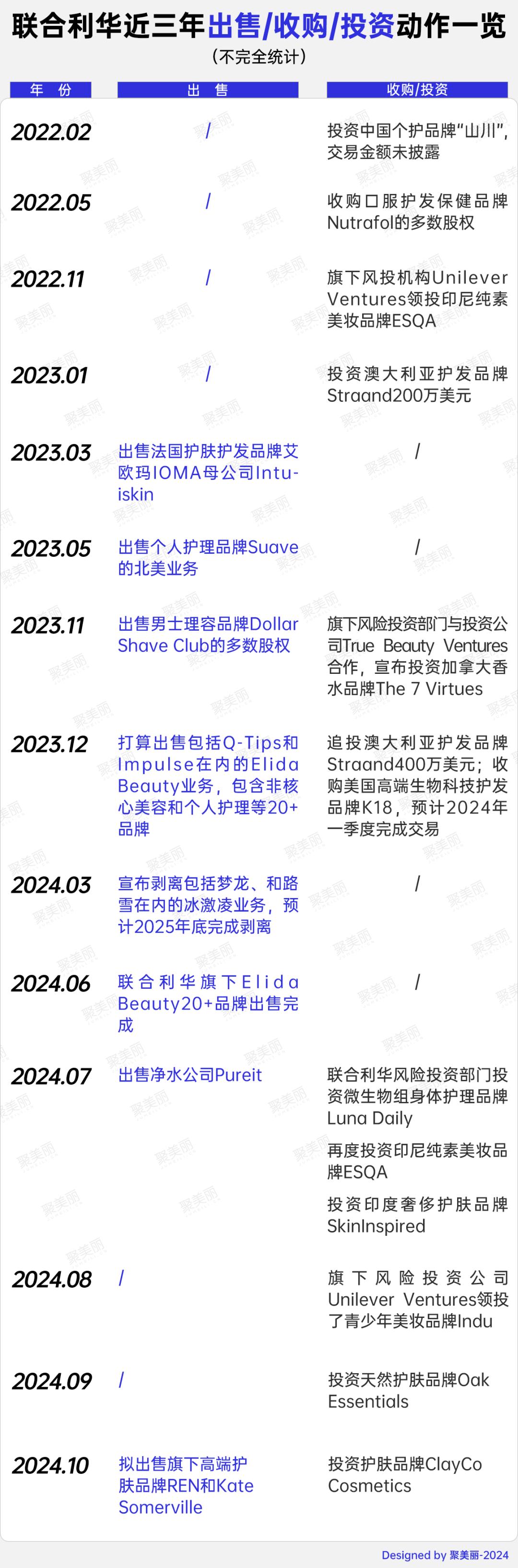 为扭转这一局面,联合利华近年来动作频频,如裁减员工、关停工厂、剥离冰激凌业务、抛售20+美妆个护品牌、投资新品牌等一系列“减脂增肌”的动作,希望由此不断调整优化企业内部经营结构,以及提升业绩质量。