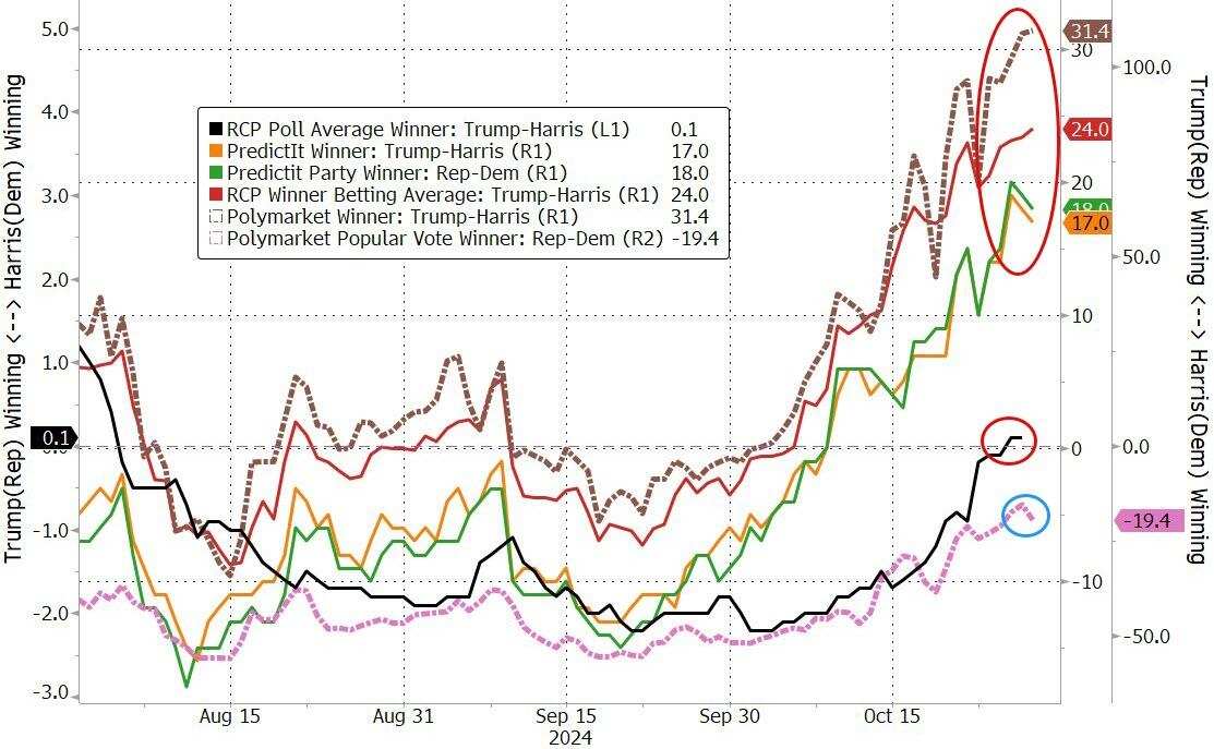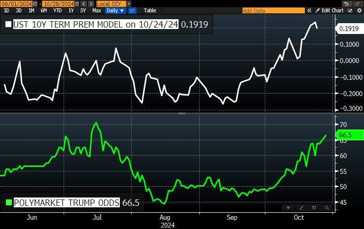 特别是在市场积极对冲特朗普当选、共和党拿下国会两院多数席位——所谓红色横扫的情况下,这是最悲观的美债期限押注结果,因为那种情况下,新一届美国政府将推行极具刺激的政策组合,即大幅放宽监管叠加减税,并且在特朗普上任第一天还有冲击价格的关税带来“再通胀”的冲动。