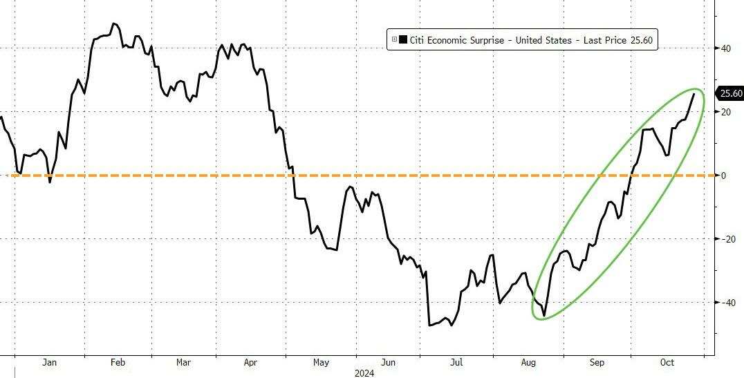 今年夏末就业数据引发的8月“硬着陆”恐慌和“美联储政策失误”左尾恐慌已经成为遥远的记忆,因为“衰退交易”基本平仓。最近几周,资金向长端/债券和短期利率(STIRS)下行保护转移都体现了,交易者预计,未来几乎所有情境下政府支出都会持续增长,因为来自认可美联储今年宽松金融状况指数(FCI)的“动物精神”产生经济连锁反应,已经帮助亚特兰大联储GDPNow经济增长预期推升到3.3%,美国在放松政策的同时,中国也在出台刺激措施,以及对特朗普红色横扫大选结果的对冲。