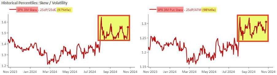 野村董事总经理、美洲跨资产宏观策略师Charlie McElligott在最新报告中警告,近几周,市场对特朗普和美国共和党拿下国会两院的大选假设结果对冲过度,可能出现哈里斯支持率比预期高、大选陷入僵局的结果,届时各类资产都会有逆转的风险,比如美债将可能因轧空而上涨,而股市会在民主党成为国会两院多数党的情形下大跌。