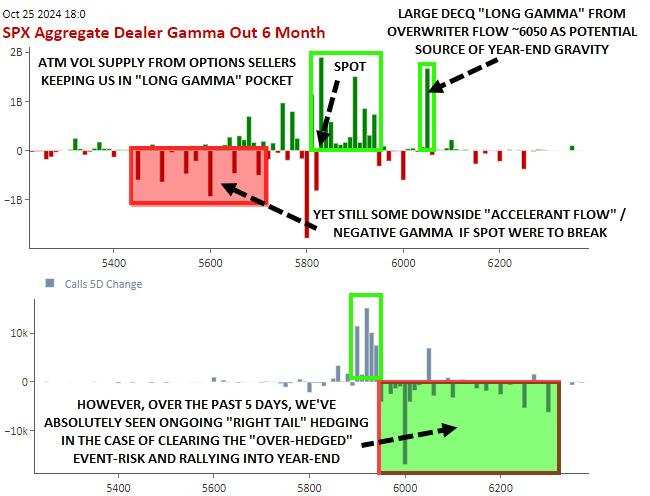 这就为大选后的事件风险“清算”创造了条件,那将导致波动率重新降低,并可能推高现货股票价格。因为1、亏损的OTM 下行股票指数对冲被解除,交易商随后将以数百亿美元的Delta 规模回购其空头期货;2、缓慢建立的“空头上行看涨期权”右尾对冲回升Delta;