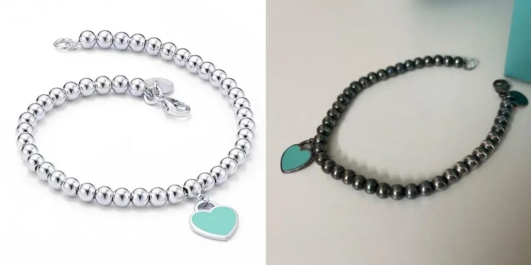 成都消费者滢滢去年大学毕业,面临从学生到社会人的身份转变,为了给自己置办白领装备,她用实习收入买了一款Heart Tag手链。如今刚刚一年过去,滢滢已经开始后悔,因为她发现手链竟然已经“黑化”。经过询问才发现,这根售价2250元的手链材质是银925吊饰搭配珐琅,“当时不懂价值,只知道牌子,这个价钱还不如买个金的细手链”。