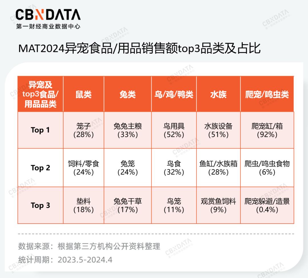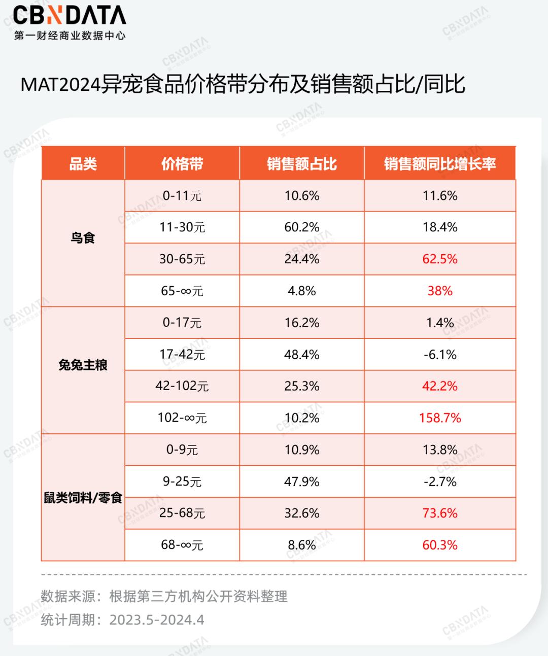 随着消费者对宠物健康和营养的关注日益增加,异宠食品市场也在向高端化发展,这体现在各个异宠品类中高价格段的主粮、零食销售额呈现同比增长态势。