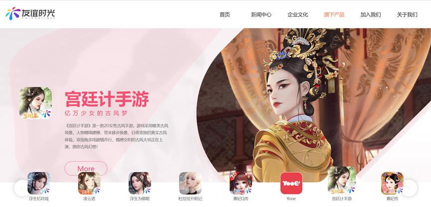 图:友谊时光的官网上展示了多款自主研发的女性向手游