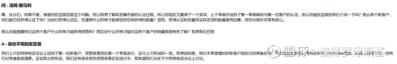 接下来解读电话交流内容,为了方便大家阅读,这里只摘选我认为重要的片段,原文来自彭博终端: