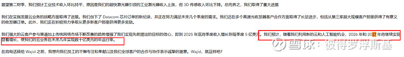 多轨是有效扩展光传输层并在高容量线路系统中提供更高灵活性的下一步。我们预计,由于我们针对云和人工智能应用的产品快速增长,以及我们整个产品组合的需求普遍改善,我们的云和网络收入在第二财季将实现强劲的连续增长。”