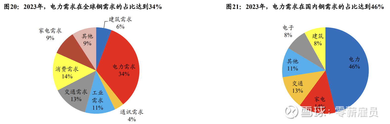 从需求情况看,电力需求占比最大。根据IWCC的数据,由于铜在电力及电气化中具有较强的不可替代性,在2023年全球精炼铜需求结构中,电力需求占比达到34%,此外,交通需求需求占比较2012年提升0.83pct,随着全球新能源化进程的推进,电网改造+新能源汽车普及对海外需求的边际拉动不可忽视。国内需求中电力需求占比近50%。根据百川盈孚数据,2023年国内需求主要集中于电力/家电/交通领域,需求占比分别为46%、14%、13%,电力需求仍为国内需求核心,而受益于国内新能源领域的快速发展,国内交通领域需求提升明显,较2021年同比提升4.4pct,国内电网投资增长+新能源行业规模提升将是国内铜需求提升驱动力。