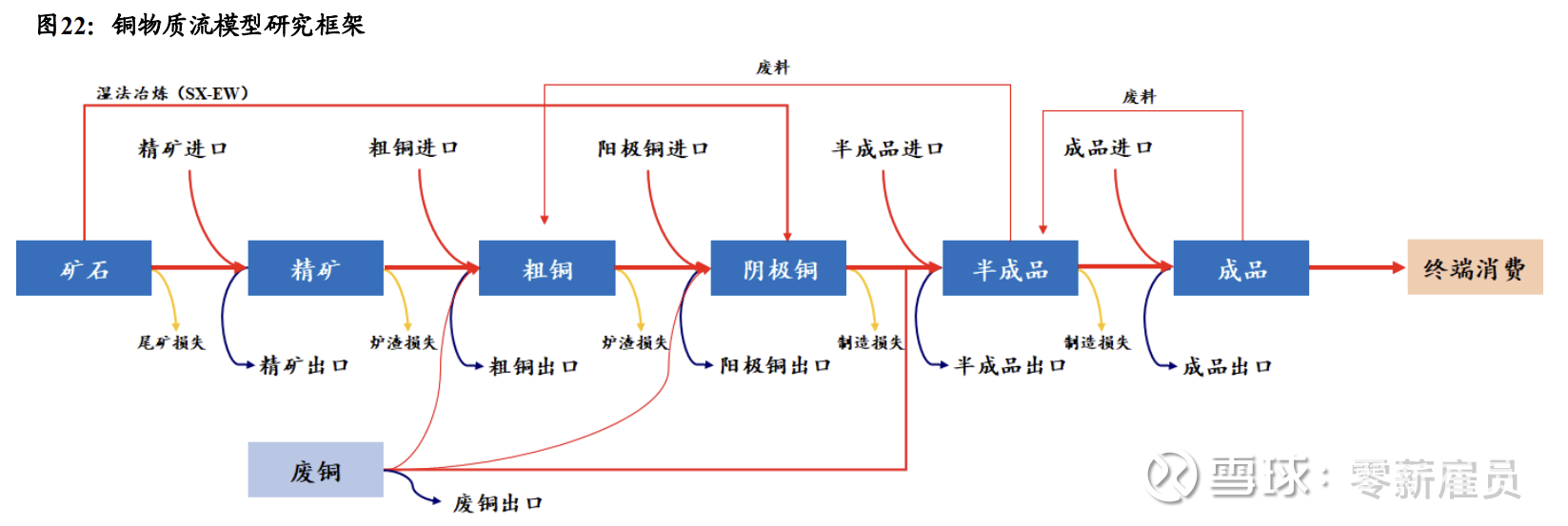 从铜物质流模型看待铜的真实需求。一般意义上所讨论的平衡表集中在精炼环节,并未涉及到加工及制造。精炼铜的需求来自于加工厂,因此,精炼铜需求丰富的国家本质上是具备丰富的铜加工厂,我们日常看到的分国别的需求,实质上是该国铜加工厂需求,而不是终端真正的需求。然而,市场经常错误地将精炼铜需求等同于该国对铜的实际需求,从而对部分国家的需求占比低估,而对类似中国的需求占比过于高估。