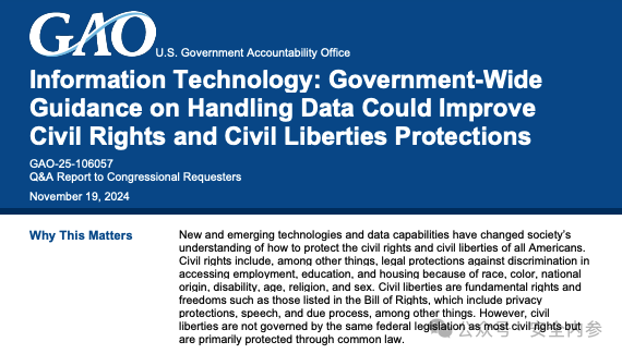 美国政府问责局建议,加强政府层面的数据安全协调工作,确保公众的公民权利和自由得到有效保护。