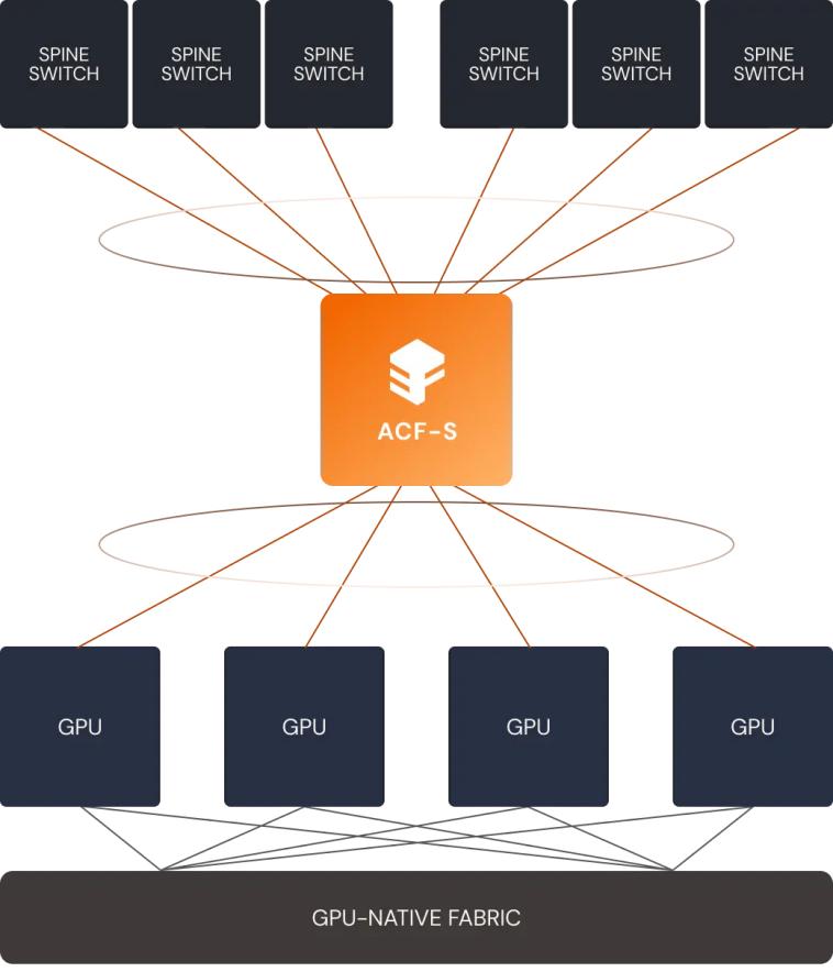 凭借单个ACF-S芯片上的800、400和100千兆以太网接口以及32个网络端口和160个PCIe通道的高基数,首次可以使用更高效的两层网络设计构建超过50万个GPU的AI集群,从而实现集群中所有GPU的最高横向扩展吞吐量和最低的端到端延迟。