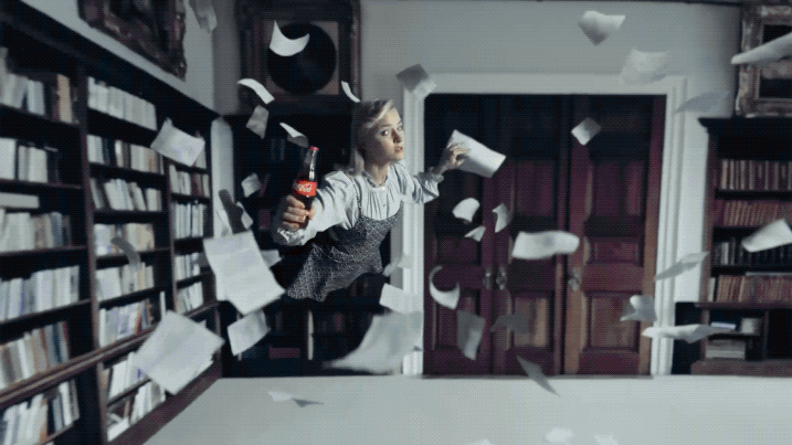 在那条广告里,一瓶可口可乐在美术馆里飞来飞去,穿越进十二幅世界名画,并融入了画风之中,整个视频从美术馆实拍,丝滑地过渡到 2D 动画、3D 动画,结合印象派、浮世绘、写实主义等画风变化,最终一瓶冰可乐,唤醒了在美术馆昏昏欲睡的主角。