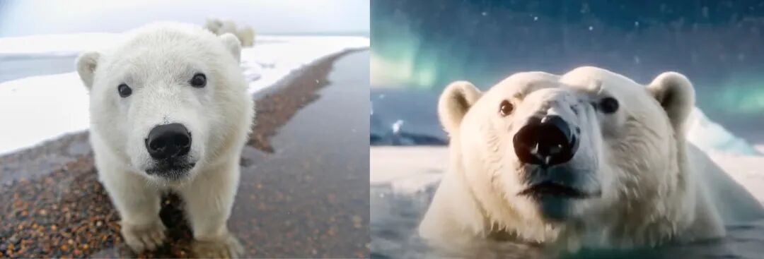 左:真实北极熊 右:可口可乐 AI 北极熊|图源:作者自制