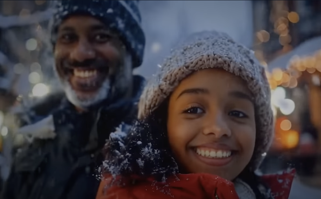 几条 AI 广告都透着一股无聊的惊悚感,无聊在于,长达一分钟的广告几乎没有信息量,就是单纯圣诞画面的堆叠。