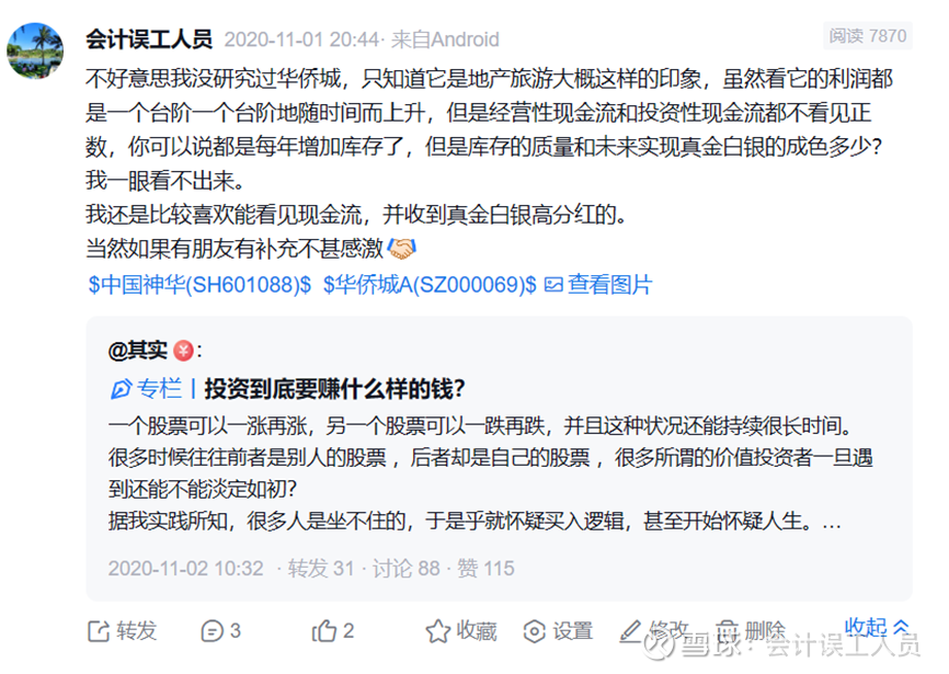 2020-11-01 承认地产账务我个人完全看不到现金流哪去了,库存?但库存的未来兑现成色多少?