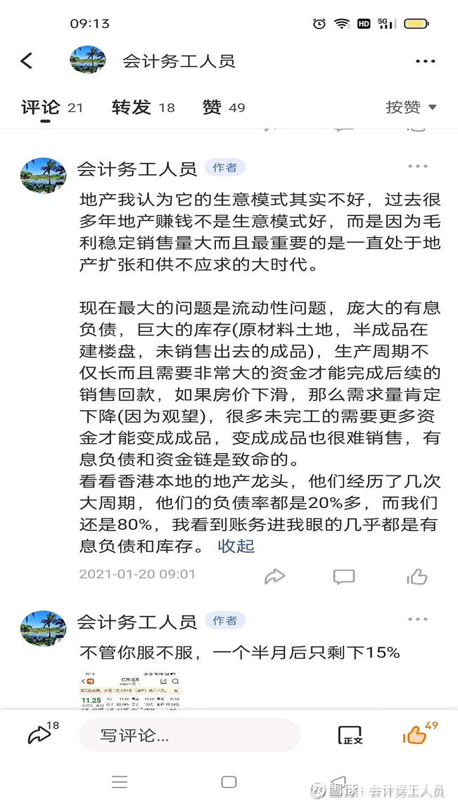 2021-01-20我认为地产的生意模式其实不好,那时正是地产最风光的时候。