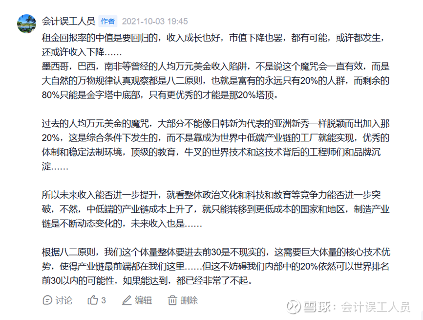 2021-10-03 万元美元收入陷阱的思考,我的底层逻辑是工资不可能无限一直成长。这也是说明工资不可能一直涨,而房子库存越来越多,供求最终会改变价格。。。