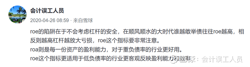 2020-04-26地产的高ROE背后是极高杠杆,而杠杆是一把锋利的双刃剑,另外人们忽略了ROA的质量。