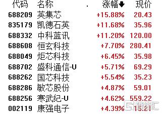 芯片股盘中拉升 寒武纪大涨超10%续创历史新高