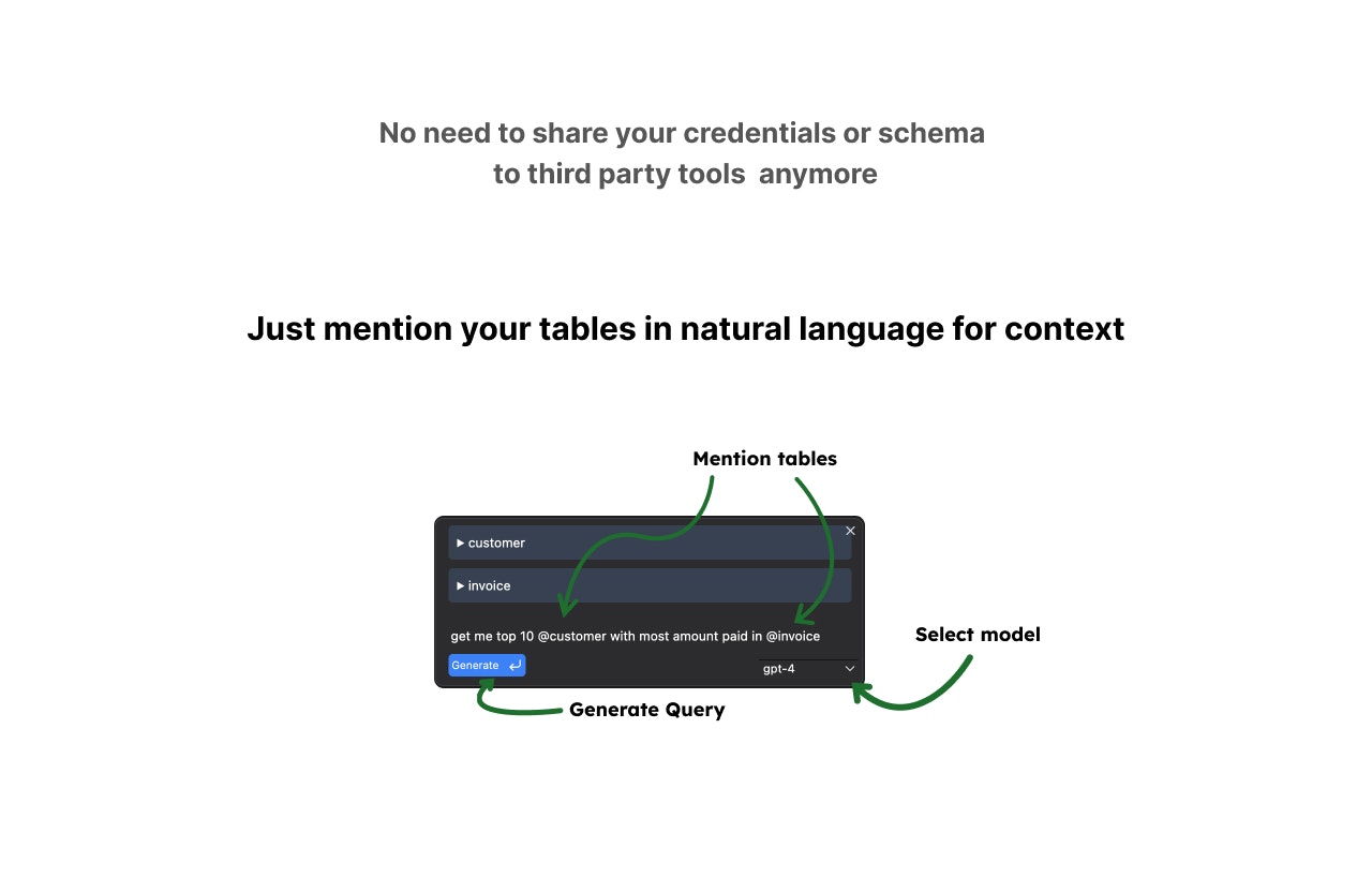 SQLPilot is an AI first SQL editor which helps you write SQL queries in natural language by connecting to the database source and directly mentioning the context in the prompt