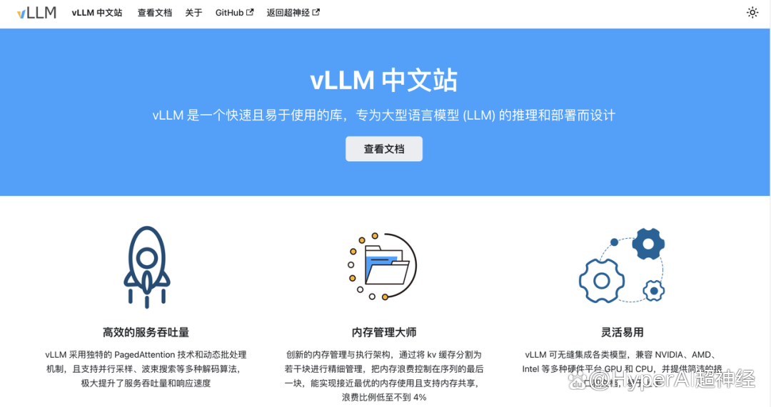 如今,大语言模型 (LLM) 的发展正在从规模参数迭代升级拓展至应用场景的适配与创新,在这个过程中,其也暴露出一系列问题。例如,在推理环节的效率较低,处理复杂任务时耗时较长,难以满足对实时性要求较高的场景需求;在资源利用方面,由于模型规模庞大,对计算资源和存储资源的消耗巨大,且存在一定程度的浪费等。 针对于此,来自加州大学伯克利分校 (UC Berkeley) 的研究团队于 2023 年开源了 vLLM (Virtual Large Language Model),这是一款专为大语言模型推理加速而设计的框架,其依靠卓越的推理效率和资源优化能力在全球范围内引发广泛关注。 为了帮助国内开发者更加便捷地获悉 vLLM 的版本更新及前沿动态,HyperAI超神经现已上线首个 vLLM 中文文档,从技术科普到实用教程,从前沿动态到重磅更新,无论是初学者还是资深专家都能够找到所需要的干货内容。 vLLM 中文文档: https://vllm.hyper.ai/ 追溯 vLLM:开源历程及技术演进 vLLM 的雏形诞生于 2022 年年底,加州大学伯克利分校的研究团队在部署一个名为「alpa」的自动化并行推理项目时,发现其运行速度非常慢且 GPU 利用率低。研究人员敏锐地察觉到,大语言模型推理存在着巨大的可优化空间。然而,市场上并没有专门针对大语言模型推理优化的开源系统,随即,他们决定自己动手创建一个大语言模型推理框架。 经过无数次的试验和调试,他们关注到了操作系统中的虚拟内存和分页技术,并基于此在 2023 年提出了开创性注意力算法 PagedAttention,其可以有效地管理注意力键和值。在此基础上,研究人员构建了高吞吐量的分布式 LLM 服务引擎 vLLM,实现了 KV 缓存内存几乎零浪费,解决了大语言模型推理中的内存管理瓶颈问题。与 Hugging Face Transformers 相比,其吞吐量提升了 24 倍,而且这一性能提升不需要对模型架构进行任何更改。 更值得一提的是,vLLM 不受硬件限制,不仅仅局限于 Nvidia GPU,还对 AMD GPU、Intel GPU、AWS Neuron 和 Google TPU 等市面上众多硬件架构敞开怀抱,真正推动了大语言模型在不同硬件环境下的高效推理和应用。如今, vLLM 已经能够支持超 40 个模型架构,并获得了包括 Anyscale、AMD、NVIDIA、Google Cloud 在内的 20 多个企业的支持和赞助。 2023 年 6 月,vLLM 的开源代码正式发布。短短一年时间里,vLLM 在 Github 上星标数就突破了 21.8k。截止目前,该项目星标数已达 31k。 vLLM 在 GitHub 上已获得 31k stars 同年 9 月,研究团队发表了论文「Efficient Memory Management for Large Language Model Serving with PagedAttention」,进一步阐述 vLLM 的技术细节和优势。而团队对 vLLM 研究的脚步并未停歇,仍在围绕兼容性、易用性等方面展开迭代升级。例如在硬件适配方面,除了 Nvidia GPU 之外,怎样能够让 vLLM 在更多的硬件上面跑起来;再比如在科研方面,如何进一步提高系统效率和推理速度等。而这些也都体现在 vLLM 的一次次的版本更新中。 论文地址: https://dl.acm.org/doi/10.1145/3600006.3613165 vLLM v0.6.4 更新 吞吐量提高 2.7 倍,延迟减少 5 倍 就在上个月,vLLM 的版本更新到了 0.6.4,在性能提升、模型支持和多模态处理等方面都取得了重要的进展。 在性能方面,新版本引入了多步调度 (Multistep scheduling) 和异步输出处理 (Asynchronous output processing),优化了 GPU 的利用率并提高了处理效率,从而提高了整体的吞吐量。 vLLM 技术解析 * 多步调度允许 vLLM 一次性完成多个步骤的调度和输入准备,使得 GPU 可以连续处理多个步骤而不必每个步骤都等待 CPU 指令,这样分散了 CPU 的工作负载,减少了 GPU 的空闲时间。 * 异步输出处理使得输出处理与模型的执行可以并行进行。具体来讲,vLLM 不再立即处理输出,而是延迟处理,在执行第 n+1 步的同时处理第 n 步的输出。虽然这可能会导致每个请求多执行一步,但对 GPU 利用率的大幅提高远远弥补了这一成本。 例如,在 Llama 8B 模型上可以实现 2.7 倍的吞吐量提升和 5 倍的 TPOT(每个输出标记的时间)减少,如下图所示。 在 ShareGPT 数据集上对搭载于 1 张 H100 的 Llama 8B 模型进行 vLLM v0.5.3 与 v0.6.0 之间的性能比较 在 ShareGPT 数据集上对搭载于 4 张 H100 的 70B 模型进行 vLLM v0.5.3 与 v0.6.0 之间的性能比较 模型支持方面 vLLM 新纳入了对 Exaone、Granite 和 Phi-3.5-MoE 等前沿大语言模型的适配。在多模态领域,增加了多图像输入的功能(官方文档中以 Phi-3-vision 模型作为示例演示),以及对 Ultravox 的多个音频块的处理能力,进一步扩展了 vLLM 在多模态任务中的应用范围。 首个完整版 vLLM 中文文档上线 毫无疑问,vLLM 作为大模型领域的一项重要技术创新,代表了当前高效推理的发展方向。为了让国内开发者更便捷、准确地理解其背后的先进技术原理,将 vLLM 引入到国内大模型的开发中,进而推动该领域的发展。HyperAI超神经的社区志愿者们通过开放合作的方式,经过翻译和校对的双重审核,成功完成了首个 vLLM 中文文档,现已完整上线至 hyper.ai。 vLLM 中文文档: https://vllm.hyper.ai/ vLLM 中文文档官方网站 vLLM 这份文档为您提供了: * 从零入门的基础概念科普 * 快速上手的一键克隆教程 * 及时更新的 vLLM 知识库 * 友好开放的中文社区生态 vLLM 在不同计算芯片上的安装方式 构建开源桥梁: TVM、Triton 与 vLLM 社区共建之旅 2022 年,HyperAI超神经上线国内首个 Apache TVM 中文文档(点击查看原文:TVM 中文站正式上线!最全机器学习模型部署「参考书」它来了),在国产芯片如火如荼高歌猛进之