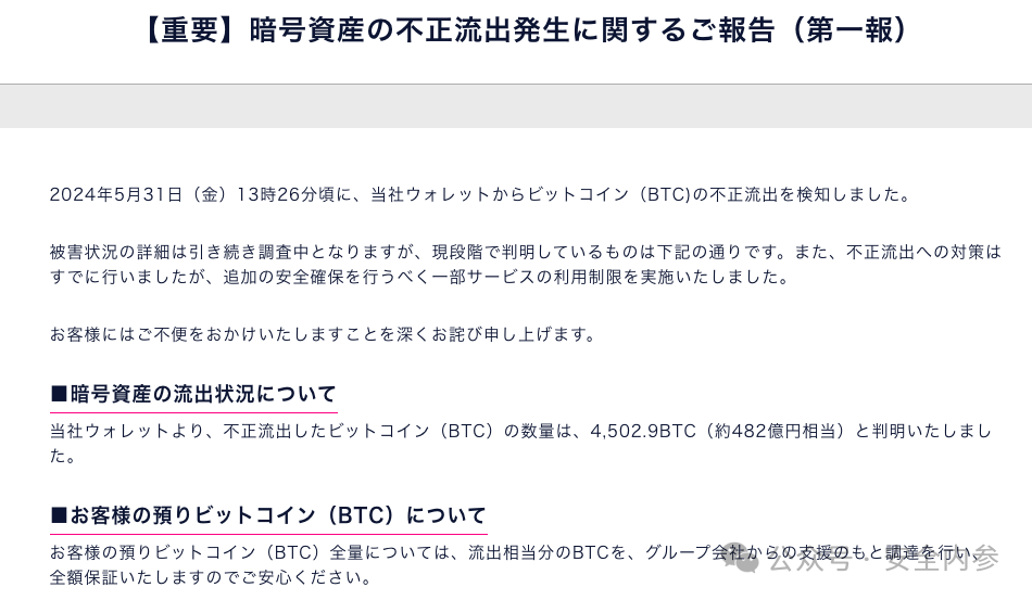 金融厅表示:“公司未采取有效措施防止因欺诈行为等导致的加密资产外流,未能确保内部和外部的安全性。其在加密资产转移管理方面存在松散行为。此外,内部审计形同虚设,容忍这些管理漏洞,未能建立健全的风险防控体系。”