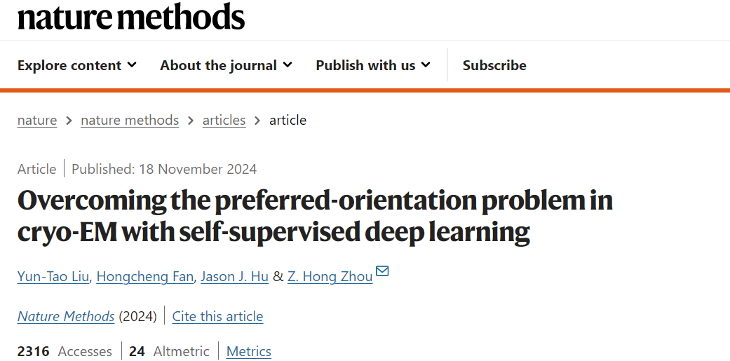 该研究以「Overcoming the preferred-orientation problem in cryo-EM with self-supervised deep learning」为题,已发表在国际学术期刊 Nature Methods。