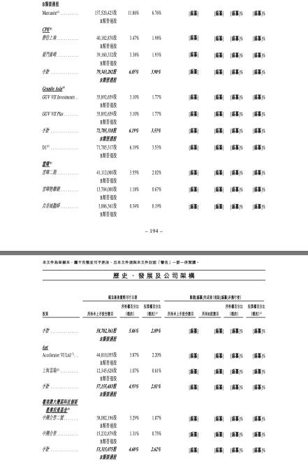 此外,华平投资持股比例达11.86%,系第一大股东;CPE通过磐信上海持股3.47%,通过厦门源峰持股3.38%,合计持股6.85%;纪源资本通过GGV VII Investments、GGV VII Plus分别持股3.10%、3.10%,合计持股6.19%;D1 Capital持股6.19%;云晖资本持股5.06%;蚂蚁集团通过Accelerator VI Ltd、上海云玚,分别持股3.87%、1.07%,合计持股4.93%;粤港澳大湾区科技创新产业投资基金,通过中湾合智二号、中湾合智分别持股3.29%、1.31%,合计持股4.60%。