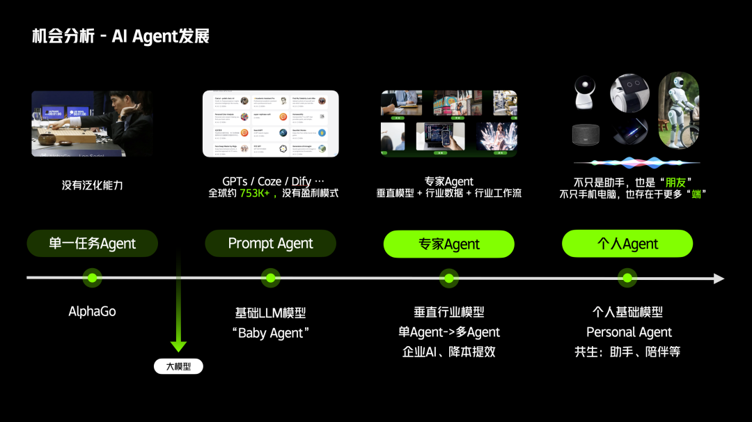 「个人基础智能体」这个概念,正是基于这样的背景而诞生的。它强调 AI 不仅要解决实际问题,更要通过陪伴提供情绪价值,使 AI 真正成为理解和融入用户生活的伙伴。无论是我们将在明年推出的智能机器人「阿奇」系列,还是与合作伙伴们共同孵化的产品,都是在践行这一理念。