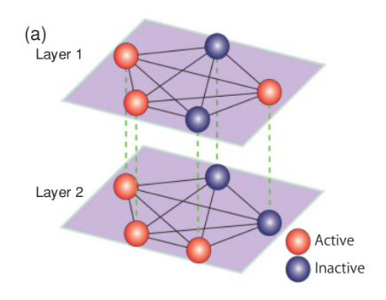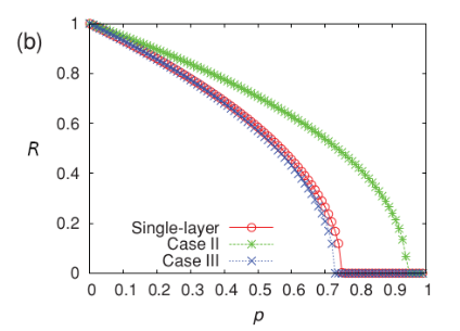 非线性动力学与复杂网络的结合为理解许多自然与人工系统的行为提供了全新视角。这些系统中,振子之间的耦合常常引发复杂的集体现象,而这些现象往往是系统正常功能的基础。例如,心脏节律、神经元活动以及电力网络的同步都依赖于振子网络的稳定动态。然而,这些系统会受到环境干扰或内部老化的影响,其整体振荡行为可能逐渐衰退,甚至崩溃。如何增强这种动力学网络的鲁棒性,以应对局部节点的退化或功能失效,一直是该领域研究的核心问题。近日发表于 Physics Reports 的一篇文章深入探讨了振子网络在动态老化过程中的鲁棒性表现,并试图为该问题提供系统性的理论框架。作者通过分析不同网络结构、耦合形式与节点特性的组合,揭示了这些系统在遭遇局部节点失效时保持集体振荡能力的内在机制。研究的核心是“老化转变”现象。具体而言,随着网络中部分振子由活跃状态逐步转变为静止状态,系统从整体振荡状态转变到完全失去振荡的状态,这种临界现象反映了网络的动态鲁棒性。文章通过解析模型,展示了老化转变如何受耦合强度、节点特性分布以及网络拓扑结构的影响。例如,作者指出,在全局耦合的 Stuart-Landau 振子网络中,随着无活跃振子的比例增加,系统会经历由振荡到“衰亡”的相变,其临界行为可以通过标度律表征。此外,网络中节点活跃性分布的异质性也显著影响了老化转变的门槛。文章还扩展了研究范围,包括多层网络、时间延迟耦合网络以及生物和量子振子网络等复杂结构。作者发现,多层网络中的耦合类型与层间相互作用方式决定了其鲁棒性,而时间延迟则可能削弱振荡的稳定性。此外,在生物网络的实例中,如神经元网络,文章展示了空间分布和局部耦合对网络动力学的调节作用。值得注意的是,文章不仅关注网络如何在失效条件下保持振荡,还探讨了提升鲁棒性的可能方法。通过引入主动振子反馈机制、低通滤波等措施,作者展示了增强网络稳定性的多种策略。这些方法为解决实际系统中的老化问题提供了潜在解决方案。例如,在电力网络中,这种研究可帮助设计更稳定的频率同步机制;而在神经科学领域,则可用于理解神经退行性疾病的动力学基础。最后,文章明确了当前研究面临的挑战与未来方向。作者指出,需要更广泛地引入机器学习和数据驱动方法,以预测复杂网络的老化转变。此外,进一步探索动态鲁棒性与网络结构之间的深层联系,对理解现实系统的动态行为具有重要意义。图1. 示例性多路复用网络,每层中有 N = 5 个节点。红色和蓝色圆圈分别代表活跃和不活跃的振子。不活跃单位的比率为 p = 0.4。黑色实线和绿色虚线分别表示所有层内连接和局部层间连接。图2. 相对于不活动元素 p 的比例的阶数参数 R,适用于三种不同的场景:单层网络、多层网络(L = 2,情况 II)和多层网络(L = 2,情况 III) 。图3. 具有突出的长距离连接的网络:d 路径网络及其相应的邻接矩阵分别显示在上行和下行中。龚铭康 | 编译
