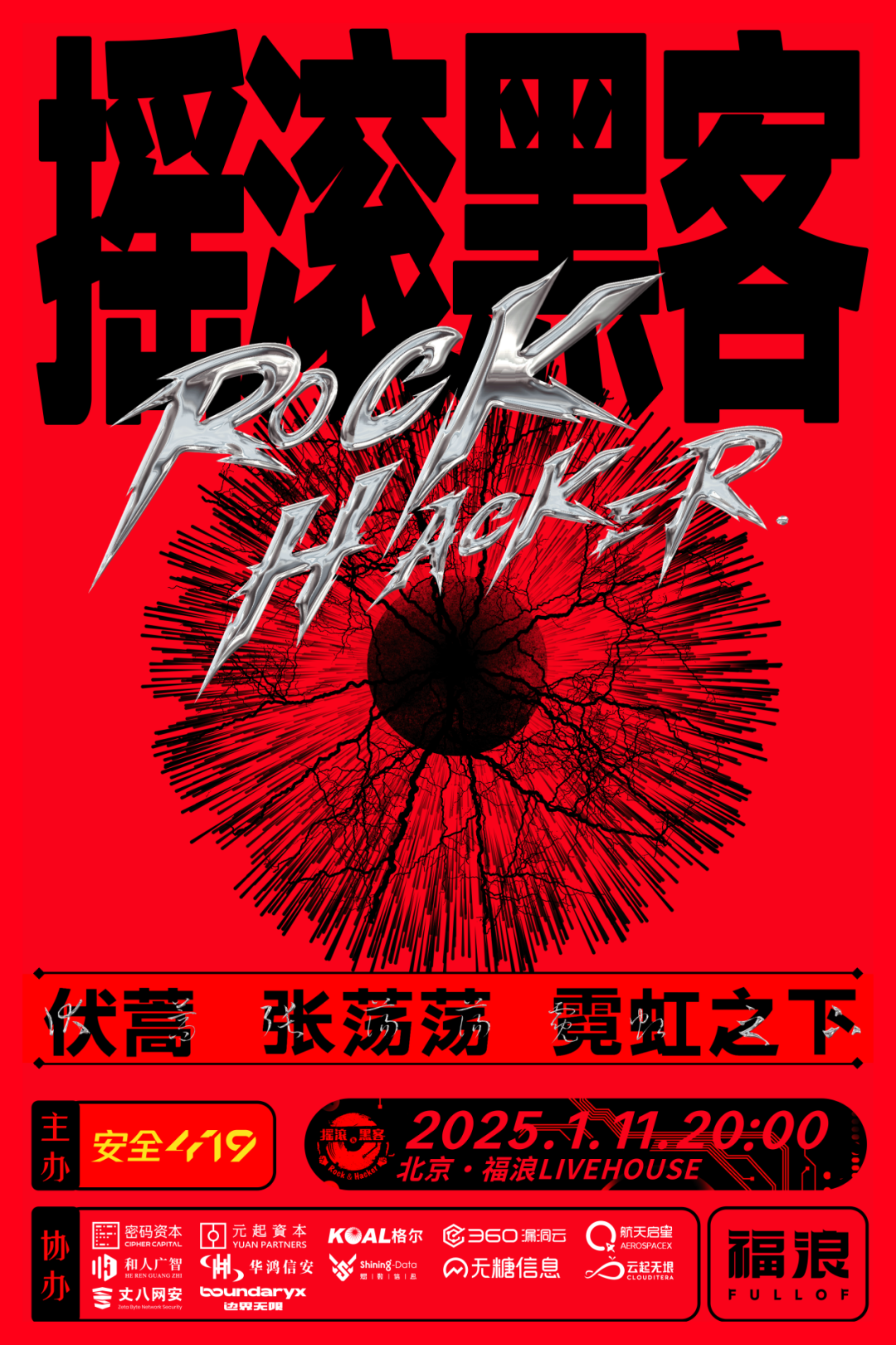 来自网络安全媒体“安全419”的官方消息——沉寂多年的“摇滚&黑客”项目在近期重新启动,全新的“摇滚黑客2025演唱会”将在2025年1月11日在北京开唱。这标志着曾经在网络安全行业火爆一时的“摇滚&黑客”跨界文化项目正式回归。全新的“摇滚黑客2025演唱会”将延续一如既往的“摇滚”和“黑客”元素,继续担任起传播推广网络安全文化的重任。