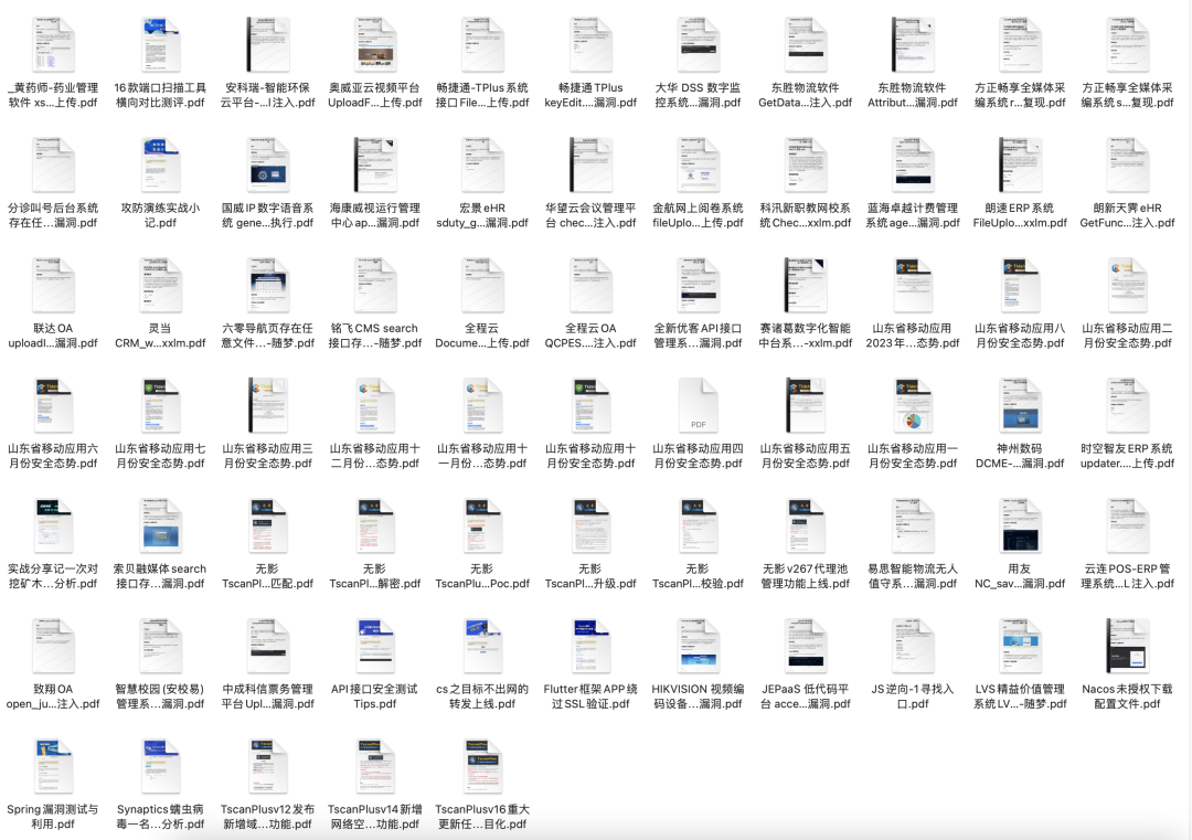 除此之外,我们也在持续向CNVD、CNNVD、CAPPVD等平台提报安全漏洞、安全态势报告,获得cnvd原创漏洞证书数量为70多个,涉及互联网众多行业应用系统。不管是攻防演练还是安服项目,漏洞挖掘都是安服仔的第一生产力。