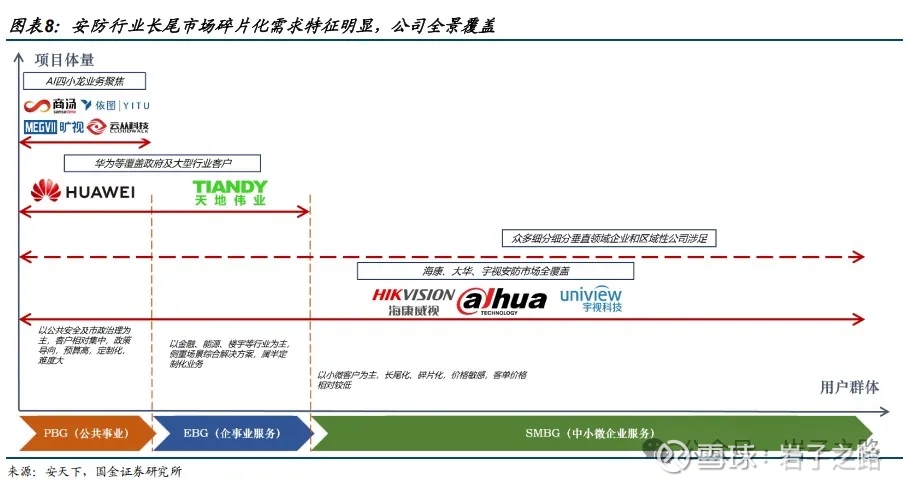 从安防业务布局上,海康、大华、宇视科技(上市公司千方科技的全资子公司,23年营收77.94亿元,和海康、大华不在一个量级)是ToG和大中小企业客户全覆盖。